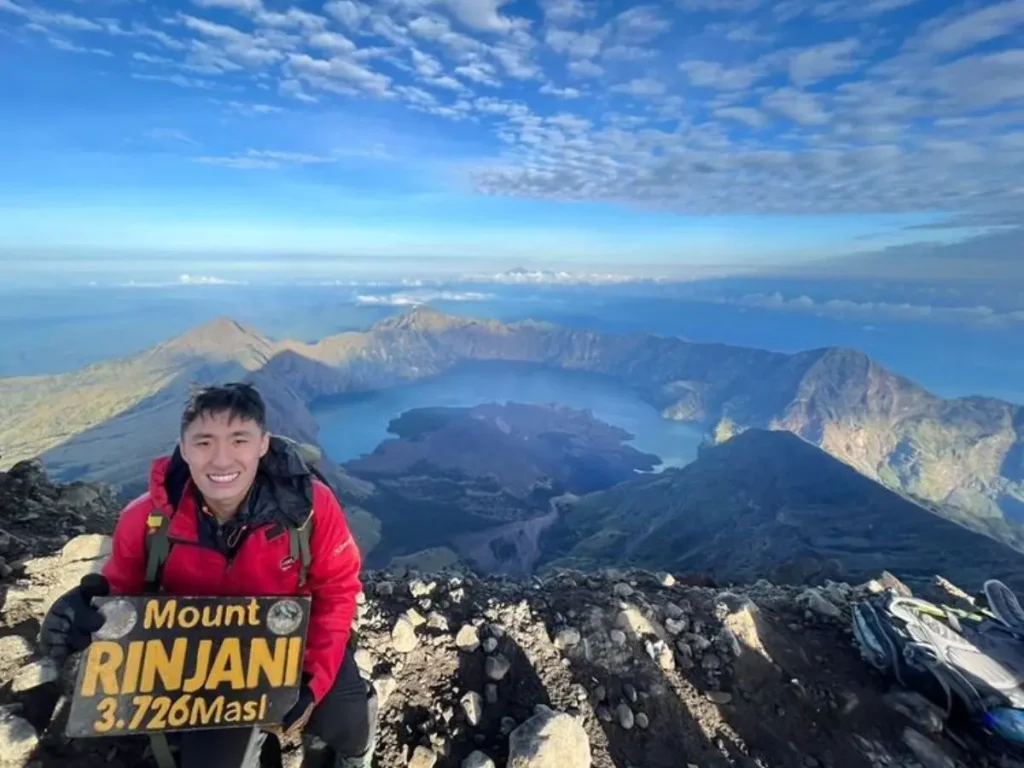 Climbing Mount Rinjani Safely. An expert guide from Rinjani Dawn Adventures stands on Senaru Crater Rim
